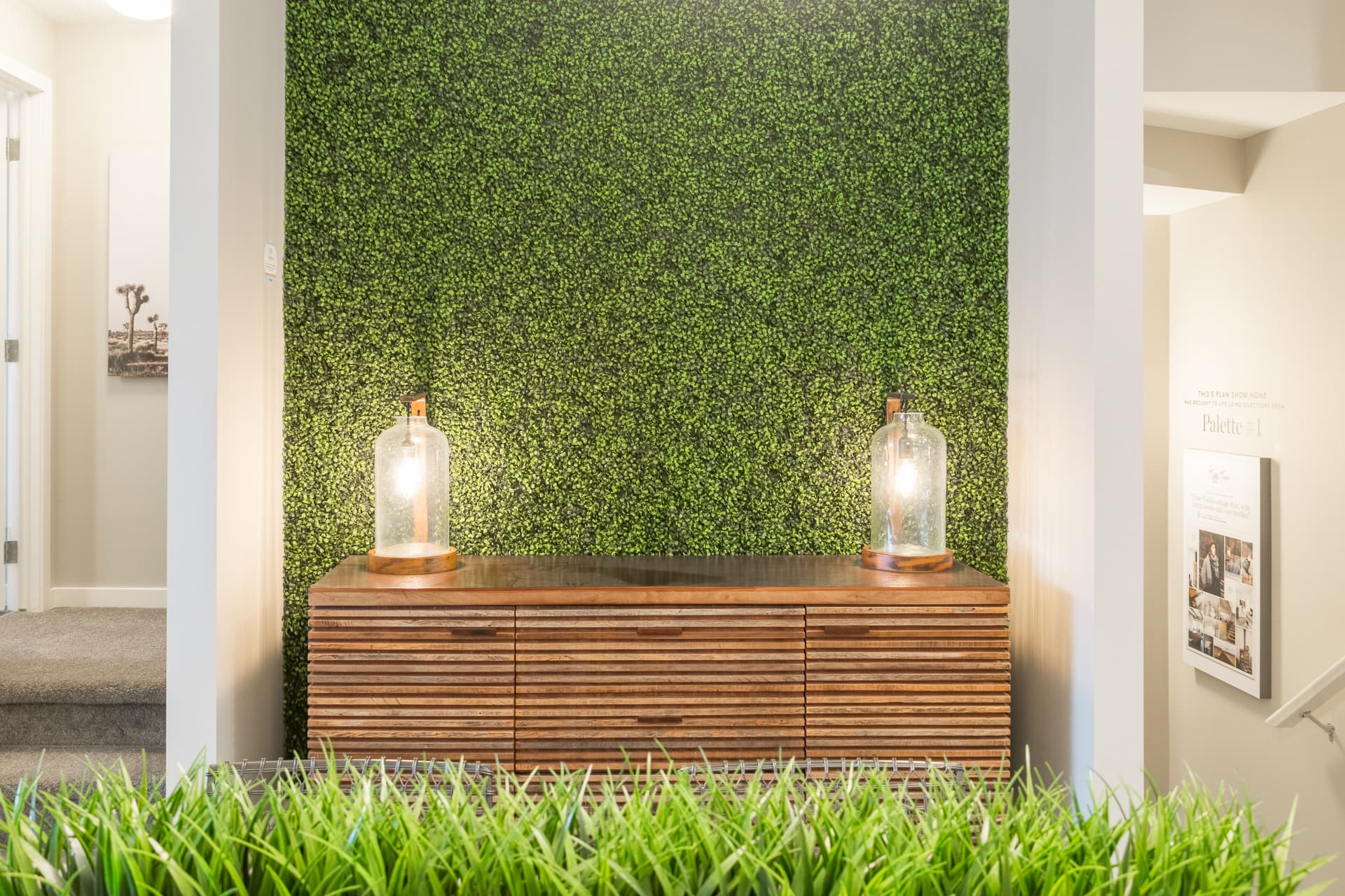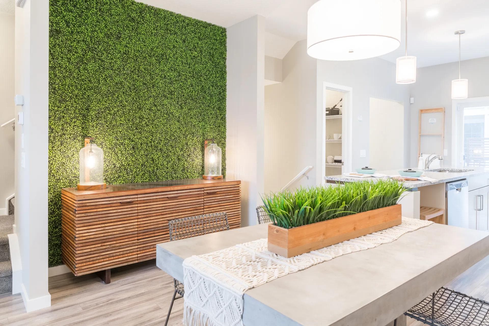 A living wall is the latest trend, and one that blurs the lines between art, design and gardening. A feature wall in your favourite room is good for your health, psyche and soul. Take inspiration from our floor-to-ceiling living feature wall in the dining room of the Copperfield Chalet L Plan show home. Here’s how we did it: