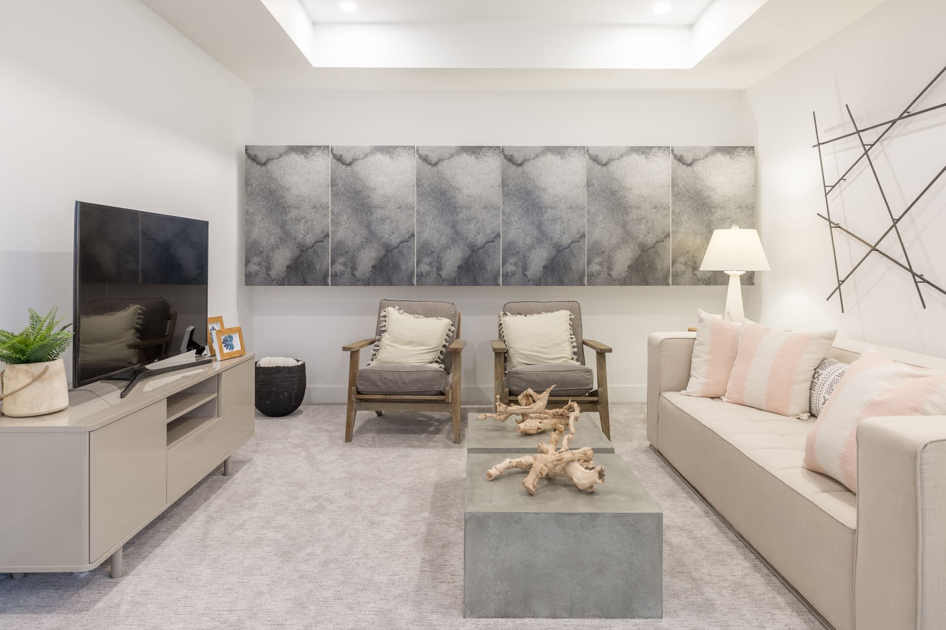 The Evora show home in Mahogany highlights how adding stylish cabinetry in spaces like bonus rooms or laundry areas can enhance both storage and wall design, creating an organized and visually appealing feature with simple steps like choosing pre-fab cabinets, selecting unique door fronts, and installing them to hide clutter.