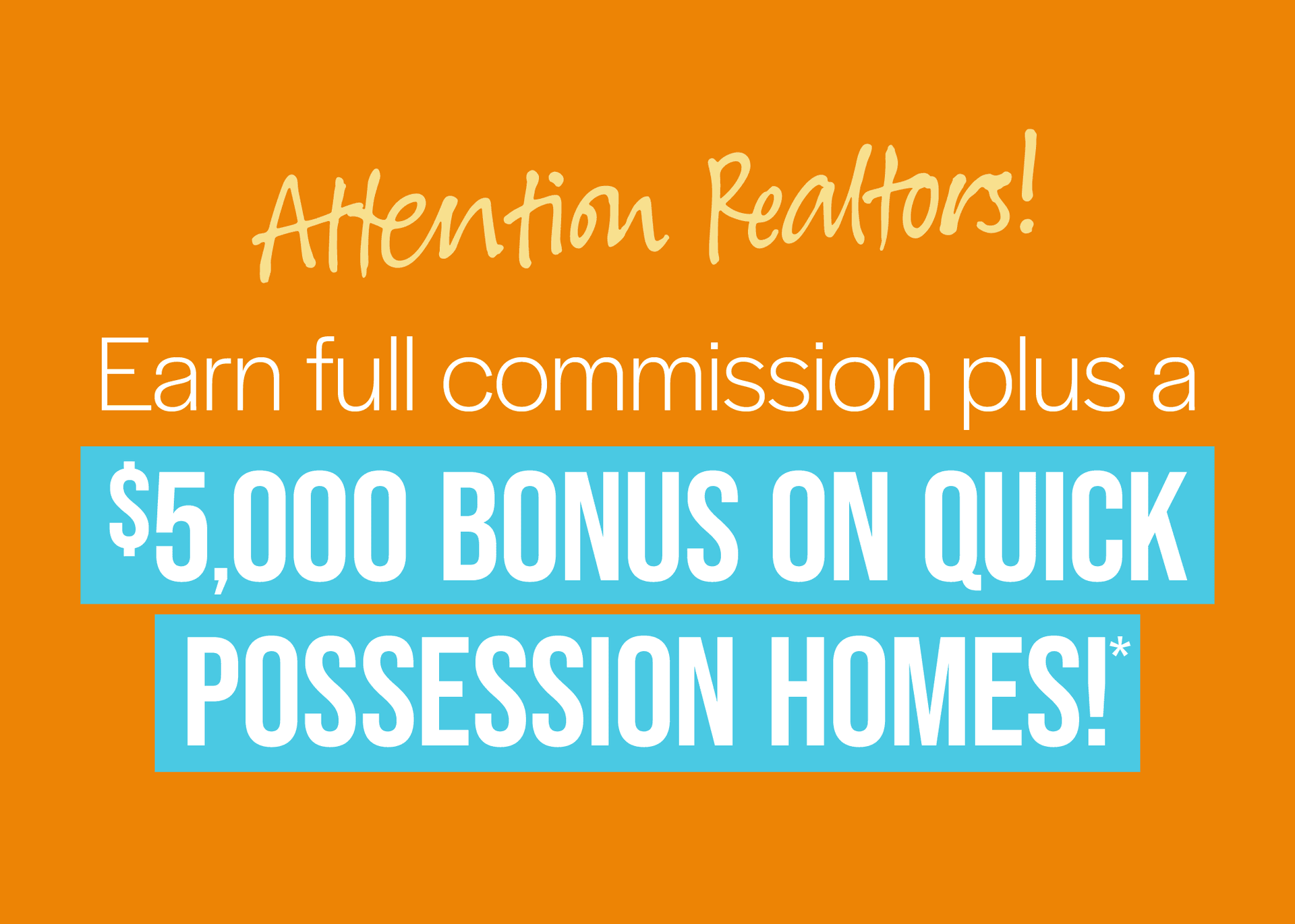 Sell a Hopewell Quick Possession home that takes Possession this year and you'll earn full commission + a $5,000 bonus!